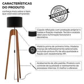 Características Tipo: Luminária de Chão Modelo: Paris Cor da Cúpula: Preto Pés de Madeira Maciça DIMENSÕES DO PRODUTO Altura: 160cm Largura: 40cm Comprimento: 40cm