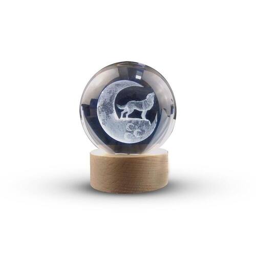 Luminária abajur globo vidro lobo led usb enfeite decorativo vidro de 3d base de madeira