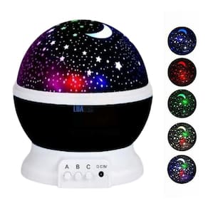 Luminária abajur infantil luz de estrela giratório projetor Cor: preto Você já olhou para as estrelas e desejou poder engarrafar a galáxia noturna e trazê-lo para dentro da sua casa Bom, agora você pode com o ajuda do projetor de estrelas star master.Você pode criar sua própria mini galáxia nas paredes do seu quarto, da sua sala de estar, festas ou de qualquer lugar que você deseje em apenas alguns segundos.Quando a luminária for conectada via usb, pode se transformar num abajur normal, removendo a tampa estelar Funções dos botõesBotão a - liga e desligaBotão b - troca cores de luzBotão c - efeito giratórioTampa semi-transparente podendo usar a luminária com ou sem a tampa, fazendo o céu estrelado ou apenas usando como luminária.Tamanho: 10.8 x 9.5 x 9.5 centímetrosConsideraçõesA função liga/desliga do botão a só funciona quando a cor da luz estiver na luz branca.Para projeção nas paredes é necessário remover o domo de plástico rígido translúcido.Sua função giratória é controlada por um dos botões, porém o domo estrelado preto é fixo. Especificações do ProdutoProduto: projetor de luz giratóriaMaterial: plástico absTamanho: 10.8 x 9.5 x 9.5 centímetrosTensão: dc5vAlimentação: 150 maFonte de energia: 4x aaa palito não incluso ou cabo usb incluso Itens inclusos01 luminária projetor estrela 360º01 cabo usb Marca: Wstore Brasil Abajur