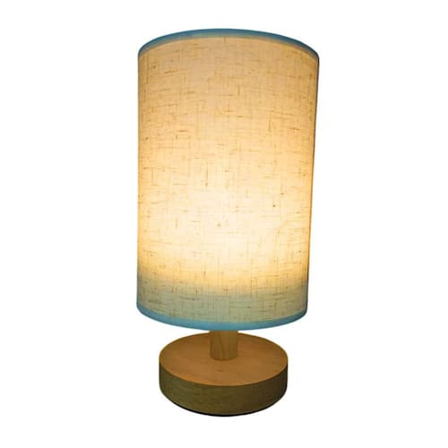Com uma base robusta em madeira e uma cúpula de tecido que filtra a luz de forma suave, esta luminária se adapta