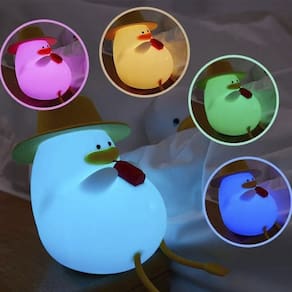 Feita de silicone macio e lavável, livre de BPA, esta luminária é segura para manuseio, permitindo que os pequenos a apertem sem preocupações.