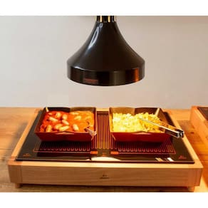 - Função dupla: Com lâmpada infravermelha, mantém pratos e travessas aquecidos; com lâmpada comum, ilumina e valoriza o ambiente; - Sistema retrátil: Ajuste fácil de altura, com design prático e funcional; - Design decorativo: Estilo e cores que destacam o ambiente com requinte; - Materiais de qualidade: Cúpula em alumínio com pintura eletrostática e suporte de silicone para segurança; - Uso flexível: Ideal para buffets e áreas de exposição de alimentos; - Fácil limpeza: Deve ser higienizada fora do período de operação; - Baixa manutenção: Produto durável com assistência em todo o Brasil; - Operação simples: Pré: Ligar e ajustar altura. Durante: Verificar distância ideal para aquecimento. Pós: Recolher e desligar.