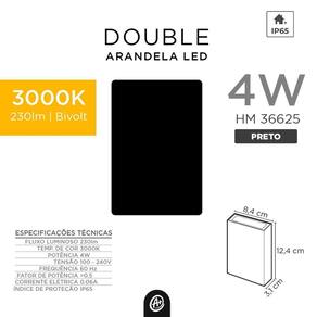 Cor: Preto Temperatura de cor: 3000K - Branco Quente Fluxo luminoso: 880 lm Potência: 4W Tensão: 100 - 240V Frequência: 50/60Hz Corrente elétrica: 0.060 A Temperatura de operação: - 20C A 45C Peso: 190g Dimensões: 84 x 124 x 31mm Marca: Não Informado