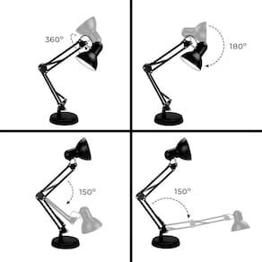 Desing, modernidade e conforto para a sua leituraA luminaria articulavel com base para mesa é ideal para você que estuda ou trabalha e preza por um ambiente mais iluminando. A luminária articulada de mesa vai lhe auxiliar, deixando o ambiente mais claro, favorecendo para a sua concentração e foco, e deixando também o ambiente com um visual mais moderno.A luminaria abajur de mesa é feita de um material de ótima qualidade e possui em sua estrutura articulações para que assim você possa dirigir o foco de luz para onde desejar.Ela é compatível com lâmpadas e27, possui um sistema bivolt e compacta.Algumas perguntas O que é luminaria articulada de mesaA luminaria articulada de mesa com base é um produto essencial para você ter em sua casa ou escritório. Ela é utilizada para auxiliar você durante os estudos, trabalho e suas leituras. Por que usar luminaria articulada de mesaA luminaria de mesa articulada ajuda a manter o foco e a concentração durante o trabalho ou estudo, pois é possível direcionar a luz para o local desejado. Ela possui bocal para lâmpadas e27, sendo compatível com lâmpadas de até 40 watts.Quais os benefícios de usar luminaria articulada de mesaA luminaria articulavel de mesa possui articulações que ajudam a movimentá-la e direcionar o a luz para onde preferir. Ela possui um corpo com altura máxima de até 68 cm auxiliando assim a luminosidade em um maior alcance. Características luminaria articulada de mesa- a luminaria articulada de mesa possui uma base estável que proporciona firmeza para a luminária- possui um bocal compatível com lâmpadas e27- possui um interruptor de ligar/desligar, localizado na parte do fio que liga na tomada- tem um estilo clássico e material de boa qualidade- seu corpo pode ser esticado até 68 cm, aumentando assim a área de iluminação- sua base tem 15 cm de diâmetro, e sua cúpula tem de 12 cm de diâmetro. Especificações luminaria articulada de mesaMaterial: metalVoltagem: bivoltLâmpadas: e27 de até 40 watts.Itens inclusos1 luminaria articulada de mesa bivolt com baseObs: não acompanha a lâmpada