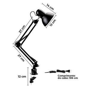 Desing, modernidade e conforto para a sua leituraA luminaria articulavel com clip ajustável para mesa é ideal para você que estuda ou trabalha e preza por um ambiente mais iluminando. A luminária articulada de mesa vai lhe auxiliar, deixando o ambiente mais claro, favorecendo para a sua concentração e foco, e deixando também o ambiente com um visual mais moderno.A luminaria abajur de mesa é feita de um material de ótima qualidade e possui em sua estrutura articulações para que assim você possa dirigir o foco de luz para onde desejar. Ela possui em sua base um clip ajustável com 4 molas e 3 juntas rotativas de metal, braço ajustado até 49,53cm de altura, permitindo assim que você a coloque onde quiser.Ela é compatível com lâmpadas e27, possui um sistema bivolt, é compacta e pode ser utilizada em suas viagens.Algumas perguntas O que é luminaria articulada de mesaA luminaria articulada de mesa com clip ajustável é um produto essencial para você ter em sua casa ou escritório. Ela é utilizada para auxiliar você durante os estudos, trabalho e suas leituras. Por que usar luminaria articulada de mesaA luminaria de mesa articulada é essencial para você que gosta de manter o foco e a concentração durante o trabalho ou estudo. Ela possui bocal para lâmpadas e27, sendo compatível com lâmpadas de até 40 watts.Quais os benefícios de usar luminaria articulada de mesaA luminaria articulavel de mesa possui articulações que ajudam a movimentá-la e direcionar a luz para onde preferir. Ela possui um corpo com altura máxima de até 68cm auxiliando assim a luminosidade em um maior alcance. Características luminaria articulada de mesa- a luminaria articulada de mesa possui um clip ajustável que pode ser fixado, proporcionando firmeza em qualquer local que for instalada- possui um bocal compatível com lâmpadas e27- possui um interruptor de ligar/desligar, localizado na parte do fio que liga na tomada- tem um estilo clássico e material de boa qualidade- seu corpo pode ser esticado até 68cm, aumentando assim a área de iluminação Especificações luminaria articulada de mesaMaterial: metalVoltagem: bivoltLâmpadas: e27 de até 40 wattsBase: clip articulávelItens inclusos1 luminaria articulada de mesa bivolt com clip ajustávelObs: não acompanha a lâmpada