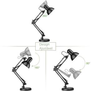 A luminária articulável de mesa possui articulações que ajudam a movimentá-la e direcionar o a luz para onde preferir.