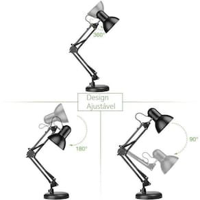 Luminária articulado de mesa -para escritório Design, modernidade e conforto para a sua leitura. A luminária articulável com base para mesa é ideal para você que estuda ou trabalha e preza por um ambiente mais iluminando. A luminária articulada de mesa vai lhe auxiliar, deixando o ambiente mais claro, favorecendo para a sua concentração e foco, e deixando também o ambiente com um visual mais moderno. A luminária abajur de mesa é feita de um material de ótima qualidade e possui em sua estrutura articulações para que assim você possa dirigir o foco de luz para onde desejar. Ela é compatível com lâmpadas e27, possui um sistema bivolt e compacta. A luminária articulável de mesa possui articulações que ajudam a movimentá-la e direcionar o a luz para onde preferir. Atenção: voltagem do produto - bivolt Atenção: acompanha garra de fixação Atenção: não acompanha lampada Especificações: Cor: preto Material: metal Possui interruptor de liga/desliga localizado na parte do fio que liga na tomada Compatível com lâmpadas: e27 de até 40 watts. 2 modos de fixação Haste articulável e flexível Bocal de cerâmica Informações técnicas: Potência máxima das lâmpadas que podem ser usadas: atenção - o produto não acompanha lampas Led: 18w Incandescente: 60w Eletrônica: 30w Tensão: 60hz Frequência: 0,5 Temp. De operação: -5c á 40 c Índice de proteção: ip40 Dimensões aproximadas da luminária completa incluindo base : Altura: 60 cm Largura: 14 cm Dimensões aproximadas da haste articulada : Altura: 47 cm Largura: 4 cm Dimensões aproximadas do bulbo - cúpula Altura: 10 cm Largura: 12 cm Comprimento: 13 cm Circunferência: 39 cm Dimensões aproximadas da base Altura: 3 cm Largura: 15 cm Circunferência: 49 cm Dimensões aproximadas da garra Diâmetro máximo da boca da garra: 4 cm 3 messes de garantia contra defeito de fabricação 1,300kg mod: pix preto