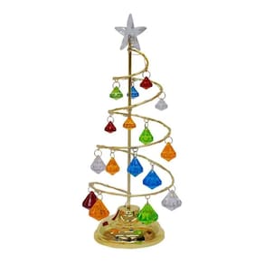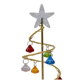 Luminária em forma de uma árvore natalina com 27 cm de altura. Ao ligar, luzes coloridos acendem. Material: plástico; Funcionamento: 3 pilhas AAA