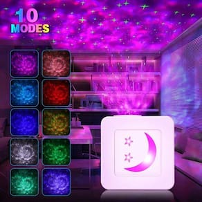 Esta luz noturna de projeção estelar apresenta 8 efeitos impressionantes de nebulosa com estrelas verdes cintilantes Coloqueo na parede ou no teto de uma sala e fornecerá luz espacial galáctica para um ambiente calmo e relaxante Uma ótima luz de humor para a noite de cinema noite de encontro ou uma cena de jogo