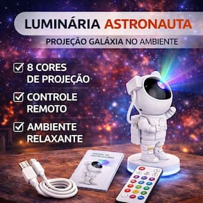 Transforme qualquer ambiente em um verdadeiro céu estrelado com a Luminária Astronauta Projetor Galáxia. Com projeção de nebulosas e estrelas coloridas, ela cria um efeito visual incrível que deixa o ambiente mais aconchegante, moderno e relaxante.