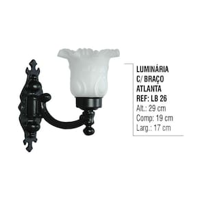 01 Luminária Atlanta Com Braço Externa/Interna em Alumínio 29cm