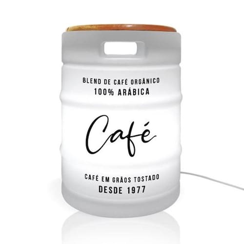 A Luminária Banco Barril de Açúcar serve como banco nas duas variedades e serve como luminária na variação Natural.
