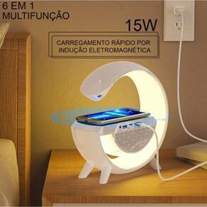 Luminária Bluetooth Caixa De Som Carregador Indução Luz Rgb