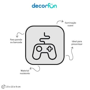 A Luminária Box Controle Gamer Light vai alegrar e divertir qualquer lugar que ela estiver, com muito estilo e personalidade ela é um intem incrível para qualquer gamer de plantão!