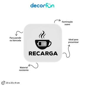 Perfeita para sua decoração, a Luminária Box Hora da Recarga, vai encantar seu quarto, aquele seu cantinho especial ou o seu escritório. Essa luminária vai agregar no seu espaço de leitura por ser uma luz difusa, o que não agride a visão, além de deixar o local com uma iluminação mais baixa. Sendo bivolt com a Luminária Box Hora da Recarga, você não precisa se preocupar com nada, basta ligar na tomada e ligar.