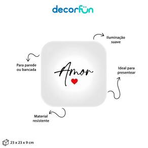 Cuidados: Limpar com pano úmido e macio. Teme químicos e abrasivos. Não utilizar lâmpadas incandescentes de qualquer tipoGaranta uma iluminação super romântica com a Luminária Box Muito Amor!