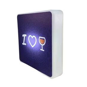 Informações adicionais: Utiliza ;fita de led 5w (inclusa no produto)Perfeita para sua decoração, a Luminária Box Slim I Love Vinho USB, vai encantar seu quarto, aquele seu cantinho especial ou o ;seu escritório. Essa luminária vai agregar no seu espaço de leitura por ser uma luz difusa, o que não agride a visão, além de deixar o local com uma iluminação mais baixa. Sendo bivolt com a Luminária Box Slim I Love Vinho USB, você não precisa se preocupar com nada, basta ligar no seu computador ou em uma tomada. ;