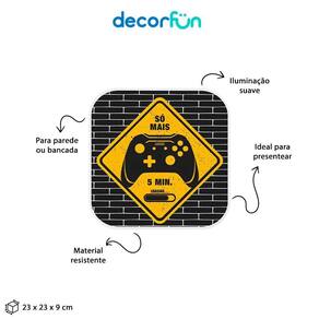 A Luminária Box Só Mais 5 Minutos Gamer Light ;vai alegrar e divertir qualquer lugar que ela estiver, com muito estilo e personalidade ;ela é um intem incrível para qualquer gamer de plantão!