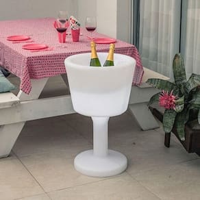 Com visual minimalista, feita em ; polietileno, altamente durável e resistente. Com capacidade de até 6 garrafas de espumante. Perfeita para receber seus amigos em casa ou na confraternização da empresa. Mantém a temperatura de suas bebidas e não condensa a água, ela não vai suar ou ficar pingando durante a ocasião, assim você fica despreocupado em ficar limpando a água. A Luminária Champanheira Com LED Funny Drinking vem com sistema de LED colorido sem fio e com controle remoto que permite a mudança de cor.