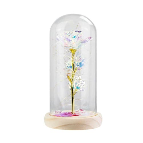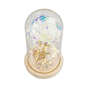 Especificações Técnicas: - Tipo de produto: Luminária - Material: Plástico e vidro - Cor: Rosa vermelha ou branca - Altura: 22cm - Largura: 11cm - Comprimento: 11cm - Peso: 300 gramas - Funcionamento: 3 pilhas AA não inclusas - Botão de liga e desliga - Rosa não removível do cilindro