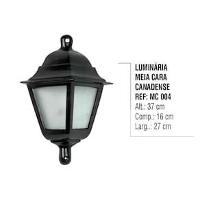 Luminária Colonial Meia Cara Canadense em Alumínio e Vidro
