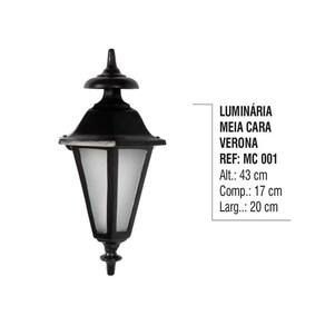 01 Luminária Colonial Meia Cara Verona em Alumínio e Vidro