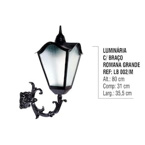 Luminária Colonial Romana Grande Com Braço em Alumínio 80cm