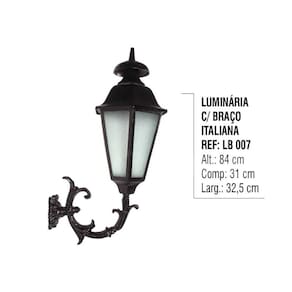 01 Luminária Com Braço Italiana Externa/Interna Alumínio 84cm