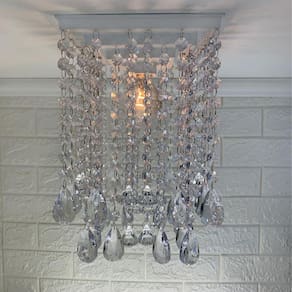 Sala, quarto, corredor, escadas, hall, sala de jantar, salão de festas ou até mesmo seu escritório, Ilumina muito bem. Base plafon quadrada de 19 cm em acrílico na cor branca. Castanhas de acrílico transparente.