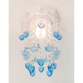 - Base plafon octogonal de 17 cm em acrílico na cor branca. - Castanhas de acrílico transparente. - Pingentes Coroas e Corações de acrílico na cor azul - Altura do Lustre 25 cm. - Voltagem: bivolt 127v 220v - Lustre enviado montado pronto para instalação. - Lâmpada Não Inclusa. Marca: Lustres Sh Design