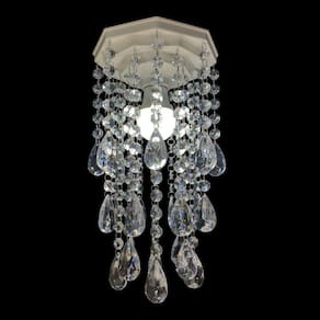 Especificações do produto: Base plafon octogonal de 17 cm em acrílico na cor branca; Altura do lustre 31 cm; Castanhas de acrílico transparente; Argolas de inox não enferrujam ; Voltagem: Bivolt 127v 220v; Bocal para lâmpada modelo E27. Lustre enviado montado pronto para instalação. Lâmpada não inclusa.