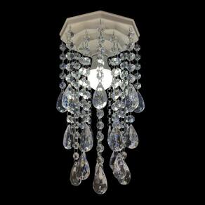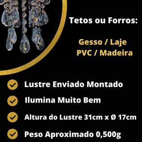 Especificações do produto: Base plafon octogonal de 17 cm em acrílico na cor branca; Altura do lustre 31 cm; Castanhas de acrílico transparente; Argolas de inox não enferrujam ; Voltagem: Bivolt 127v 220v; Bocal para lâmpada modelo E27. Lustre enviado montado pronto para instalação. Lâmpada não inclusa.