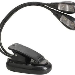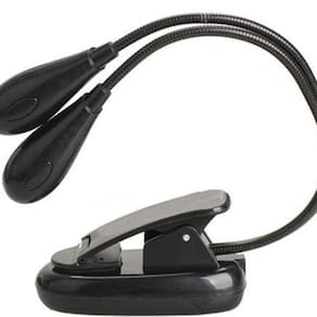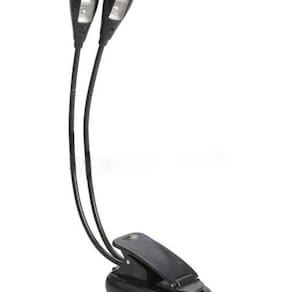Luminária de presilha com 4 Leds-configuração de até 4 níveis de intensidade luminosa.-2 Hastes flexíveis (gooseneck) com a possibilidade de múltiplos ajustes.-sistema de fixação por presilha.-forte luminosidade,sem incomodar a visão.-baixo consumo de energia,graças a aplicação do LED,permitindo o uso contínuo de pilhas por várias horas sem interrupção luminosa.-modos de consumo de energia: Pilhas AAA (não inclusas). Fonte de 4,5v (não inclusa). Porta USB,através do cabo (não incluso).-material:aço e plástico-cor:preto-itens inclusos: Luminária de 4 LEDs-ideal para uso em estantes de partitura,na cabeceira de cama para leitura de livros,carro,computador ou em qualquer ambiente que se deseja iluminar.Obs: Não acompanha pilhas AAA