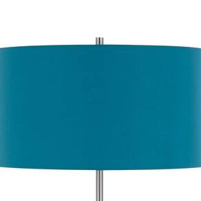 Luminária de chão Benjara Sie de 59 polegadas, abajur de linho, base redonda, metal prateado, cromo e azul aqua