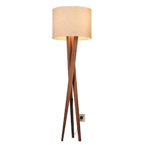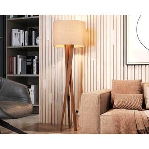 Luminária de chão moderna tripé com cupula redonda cor palha