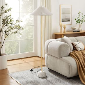 Luminária de chão Modway Illusion com base de mármore e abajur plissado em latão