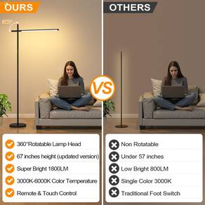 Candeeiro de piso LED de canto, cabeça rotativa de 360°, lâmpadas de piso minimalistas superbrilhantes de 1800LM reguláveis com controle remoto, luz de canto moderna 3000K-6000K, lâmpada de pé de 170 cm de altura para sala de estar, quarto, escritório - ?Cabeça de lâmpada rotativa de 360°?: Lâmpada de piso LED de canto 2025, possui uma cabeça rotativa de 360°, perfeita para necessidades de iluminação versátil. Ideal como um candeeiro de canto elegante para o seu quarto, sala de estar ou escritório — uma lâmpada, vários usos. Economize espaço e orçamento. - ?Temperatura e brilho de cor ajustáveis?: Ajuste facilmente a temperatura da cor de 2700 K a 6500 K e o brilho de 10% a 100%. Seja para ler, trabalhar ou relaxar, esta luminária de canto LED oferece iluminação perfeita para qualquer ocasião. - ?Controle remoto inteligente e controle de toque?: ajuste o brilho e a temperatura da cor com o interruptor de toque ou controle remoto a até 20 metros de distância. Desligue convenientemente a luminária de chão minimalista da cama sem se preocupar com atraso (pilhas incluídas) - ?Temporizador e função de memória?: memorize o brilho que você definiu antes de desligar a luz do canto. Além disso, a função de temporizador de 1, 2, 4, 8 horas ajuda a economizar energia e oferece maior segurança. - ?Fácil de instalar e base estável?: luminária de chão de LED integrada pré-montada, basta apertar os postes, instalar em segundos. A base e o poste resistentes anti-ponta garantem excelente estabilidade. - ?Garantia de 3 anos?: Oferecemos um serviço pós-venda de 3 anos e um reembolso de 60 dias para problemas de qualidade. Se sua luminária de chão de canto tiver algum defeito ou parar de funcionar dentro de 3 anos, ajudaremos você a solucionar problemas ou enviar um produto totalmente novo.