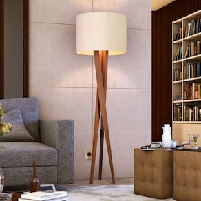 Produzida com material de alta qualidade, conta com pés transados em madeira maciça, soquete E-27, cúpula em tecido tramê e cabo de energia bivolt 110/220 volts com comprimento de 2 metros.