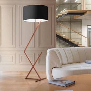Luminária De Chão Piso Lustre Abajur Bali Cúpula Cobre/Preto