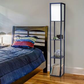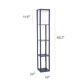Luminária de chão Simple Designs LF1014-NAV-LB de três prateleiras Etagere Organizer Storage com abajur de linho branco para sala de estar, quarto, escritório, corredor, azul marinho, com lâmpada LED Feit incluída