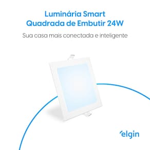 A Luminária Inteligente de Embutir Quadrada LED Elgin é mais um dispositivo que deixará sua casa conectada. Controle sua Luminária pelo celular, através do aplicativo Elgin Smart de forma simples e rápida, use também o comando de voz para controlar a iluminação usando o Amazon Alexa ou Google Assistant. A Luminária LED tem potência de 24W, vida útil de longa duração e baixo consumo energético. Com ela, você pode ajustar a intensidade da iluminação para cada momento, reduza a luz para assistir um filme na sala ou potencialize para a hora da leitura à noite.