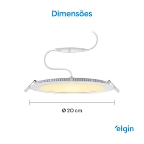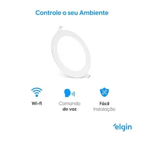 Luminária De Embutir Redonda Smart - 18W Compatível Com Alexa E Google Home Bivolt A Luminária Inteligente Led Elgin é mais um dispositivo que deixará sua casa conectada. Controle sua Luminária pelo celular, através do aplicativo Elgin Smart de forma simples e rápida, use também o comando de voz para controlar a iluminação usando o Amazon Alexa ou Google Assistent. A Luminária Led tem potência de 18W, vida útil de longa duração e baixo consumo energético. Com ela, você pode ajustar a intensidade da iluminação para cada momento: reduza a luz para assistir um filme na sala ou potencialize para a hora da leitura à noite. Temperatura de cor RGB de 3.000K até 6.500K.Com timer programável, você pode deixar a luz acesa para aumentar a segurança à noite. É só agendar horários específicos para acender ou apagar as luzes. Possui instalação simplificada, não sendo necessário nenhum acessório extra ou mão de obra especializada. Ean: 7897013526442