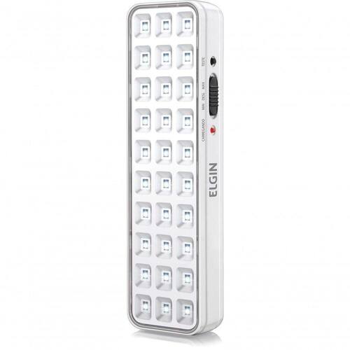 Luminária De Emergência 30 Leds Bateria De Lítio 2w - 48lem30l0000 LUMINÁRIA DE EMERGÊNCIA 30 LEDS BATERIA DE LÍTIO 2W - 48LEM30L0000 A Luminária de Emergência Elgin possui bateria de lítio, que não agride o ambiente. Sistema de iluminação de emergência completo com: sistema de supervisão da rede elétrica, carregador de bateria, bateria e fonte de luz, integrados em um único produto, compacto, podendo ser aplicado nas mais diversas situações. Característica Técnica: Potência: 2W; Tensão: 100-240V; Frequência: 50/60Hz; Fluxo Luminoso: 100 lm (fluxo maximo) / 55 lm (fluxo minimo); Temperatura de Cor: 6500K; Vida Útil: 3h (fluxo máx.) / 6h (fluxo mín.). 300 recargas; Tempo de Recarga: 48h em 127V e 24h em 220V; IRC:>70; IP: IP20. Peso do Produto: 0,115 Kg; Dimensões do produto (AxLxC): 2,8 x 5,5 x 20,2 cm.