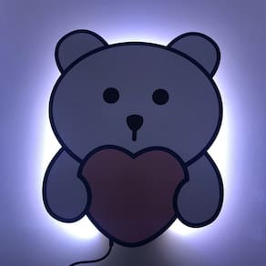 Luminária de ursinho love é feita em MDF colorido de 3mm, iluminação de LED com fonte de energia bivolt (110/220v) com acabamentos feitos a mão com muito carinho e dedicação. Ideal para decoração de ambientes como quartos infantil, sala de estar, dentre outros.