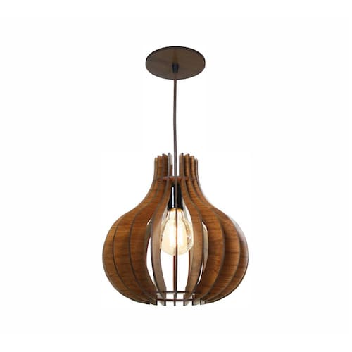 Luminária De Madeira Pendente Ripado Gota Imbúia 30Cm Medidas: Diâmetro 30cm x Altura 30cm Material: Madeira Cor: Imbuia Cabo elétrico: Tecido Marrom 1 Mt Lâmpada: E-27 - Não inclusa Sugestão de Lâmpadas: LED Retrô Voltagem: Bivolt Recomendações gerais: Uso em ambiente interno, não expor ao tempo, tal como sob a ação da chuva e sol. Para limpeza, utilizar pincel, espanador ou pano de microfibra seco. Por se tratar de um produto natural, a madeira pode apresentar tonalidade e veios levemente diferentes entre um produto e outro. Marca: Não Informado