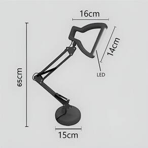 Dimensões: 65 cm (altura máxima) x 15 cm (base) x 16 cm (largura da lâmpada)