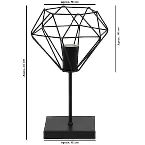 Com aproximadamente 12 cm de base, 16 cm de largura x 16 de altura do Diamante, totalizando aproximadamente 30 cm de altura total do abajur.