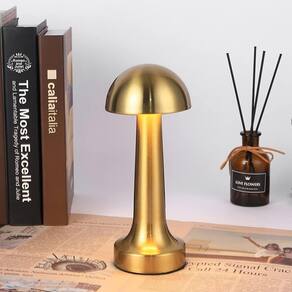 Luminária de Mesa Abajur Dourado Touch Recarregável