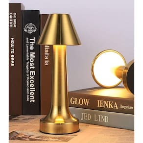 Luminária de Mesa Abajur Dourado Touch Recarregável
