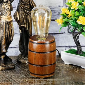 Luminária de mesa em madeira maciça Modelo barril Acabamento acetinado na cor imbuia - fabricada em madeira maciça, legalizada e sustentável; - dimensões: 12cm de altura e 9cm de diâmetro largura ; - soquete padrão e27; - extensão de 1,2m de comprimento com tipo gangorra; - não acompanha a lâmpada Marca: Não Informado Ean: 7897072197454